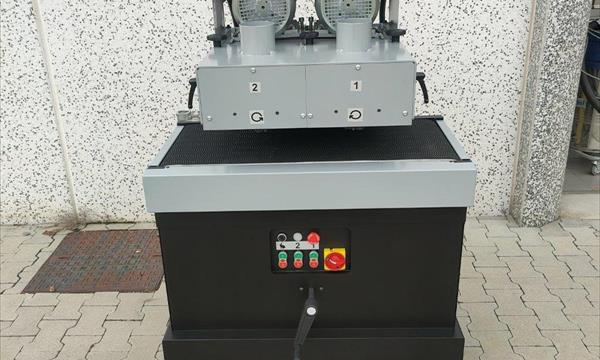 Spazzolatrice professionale per legno Sorbini, completa di funzione rusticatrice, macchinario completo tappeto vacuum e spazzole con oscillazione. Piano di lavoro 1350 mm